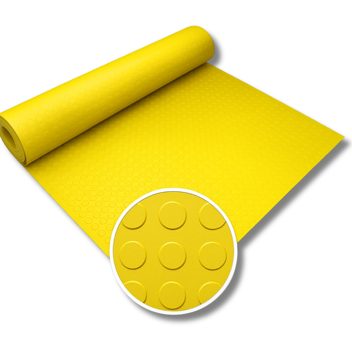 Piso de borracha na cor amarela com dimensões de 12m de comprimento × 0,8m de largura, desenvolvido para áreas que exigem alta visibilidade e segurança. Ideal para sinalização de rotas de fuga, áreas de risco e espaços com necessidade de demarcação visual.