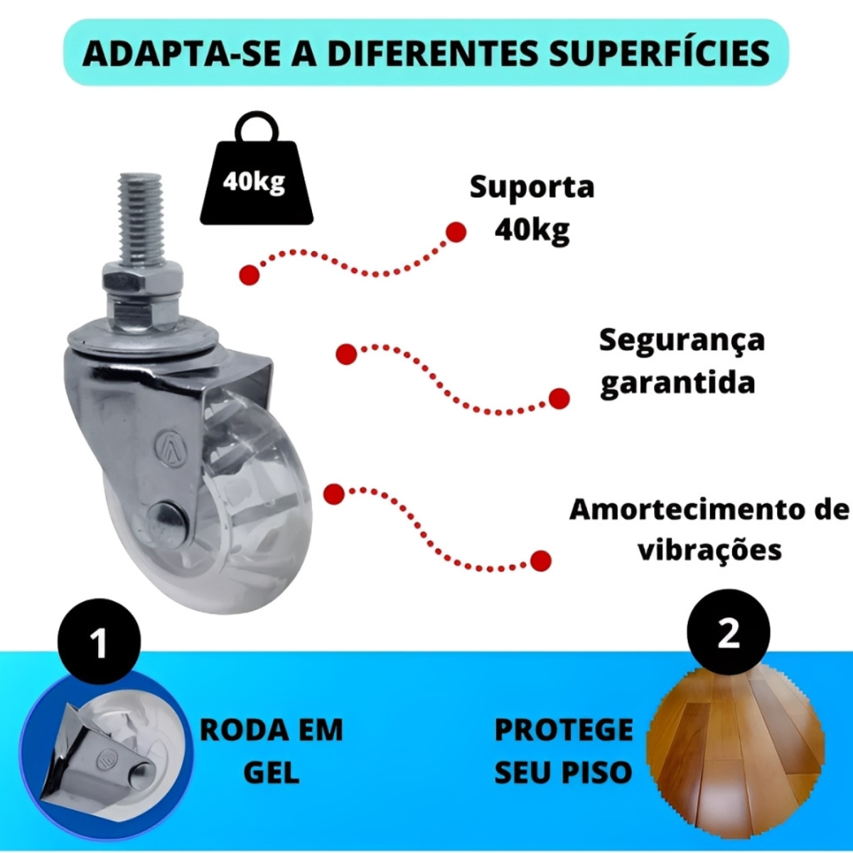 • Capacidade: 40kg por roda